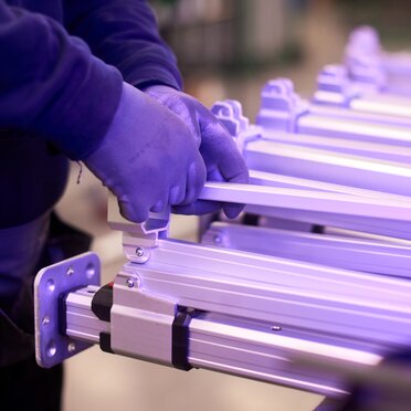 We only use anodised 6060 aluminium from Italy and process it directly at our site in South Tyrol (IT). This special aluminium alloy has a very high corrosion resistance, is easy to weld and, thanks to the anodising process, has a very modern matt look as well as additional protection against external influences.